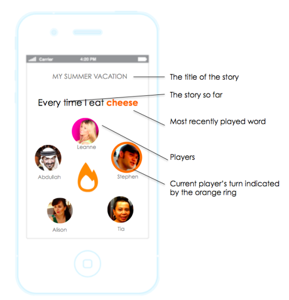 STEP 4: You're in! You'll see the story title at the top (which you can choose yourself or have us choose for you) and the story so far. When it's your turn, you'll see an orange ring around your photo (or feel free to carry out your normal business and we'll send you a notification when you're up). Type in your words or sentences and click Submit. BOOM! Your contribution gets added to story.